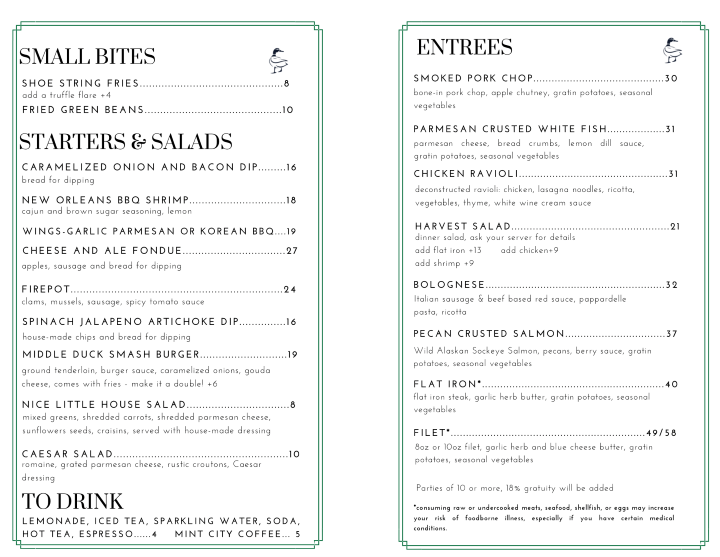 “ We love the atmosphere at the Middle Duck Bar! The staff is very friendly and attentive, and the food is great. We pay a weekly visit to Chole who always has an awesome food or cocktail recommendation for us. Looking forward to our next visit! ”